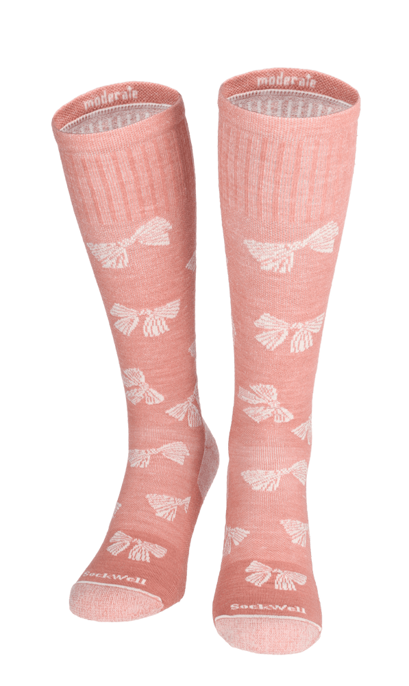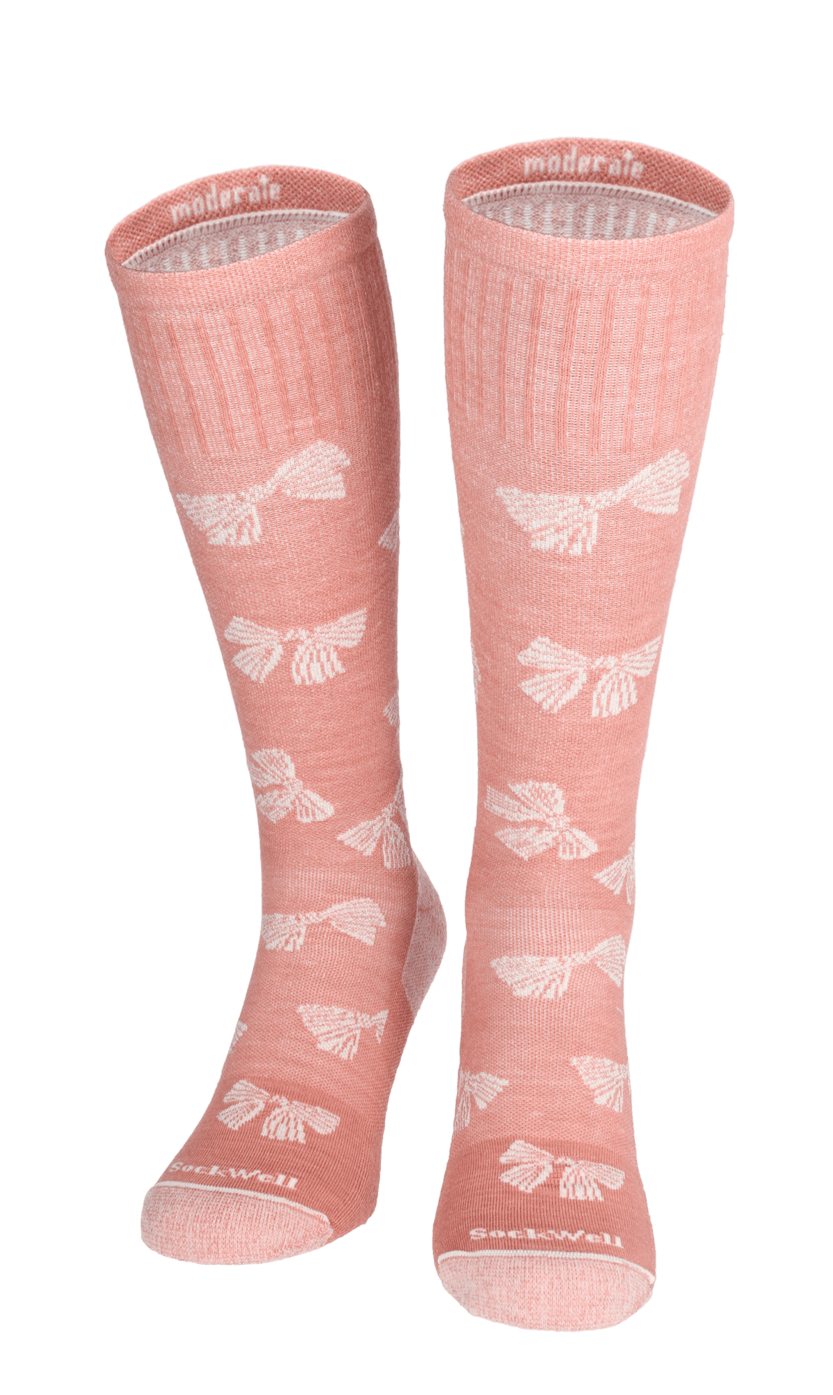 De Bows compressiekousen zijn trendy en leuke compressiekousen voor dames. Met lichte klasse 1 compressie zijn ze jouw dagelijkse oplossing tegen vermoeide benen en opgezwollen voeten. De compressie biedt een gevoel van extra ondersteuning door het optimaliseren van de bloedsomloop in je voeten en benen. Ze zorgen voor een energieker gevoel en vitalere voeten en benen bij langdurig staan en zitten, lange vliegreizen en autoritten of tijdens lichamelijke activiteiten. Tevens verkleinen ze de kans op spataderen en zijn het ondersteunende sokken tijdens de zwangerschap. De hoogwaardige, natuurlijke materialen dragen bij aan een hoog draagcomfort. Door de antibacteriële eigenschappen blijven je voeten en de sokken vrij van geurtjes.