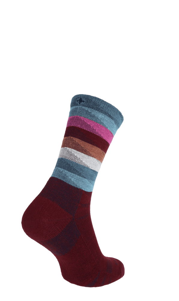 De Sockwell Peaks zijn dames wandelsokken met een normale sokhoogte. De wandelsokken hebben een naadloze teenaansluiting en zijn voorzien van lichte compressie om je voeten en benen langer energiek te houden tijdens het wandelen of hiken. De compressie zorgt ervoor dat de bloedsomloop vanuit de voeten optimaal blijft. Een hoogwaardige, antibacteriële materialenmix houdt de voeten droog, vrij van geurtjes en aangenaam op temperatuur. Dankzij de materiaalcombinatie van merinowol en bamboe zijn ze ideaal voor alle seizoenen en in combinatie met de nauwsluitende pasvorm verkleinen ze de kans op blaarvorming. Een wat dikker gebreid voetbed zorgt voor wat extra demping bij elke stap die je zet.